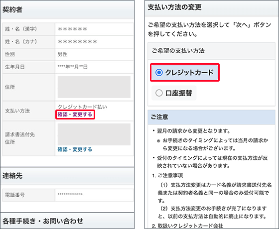 支払い方法を変更する場合は、でんき・ガスのお支払いのみでなく